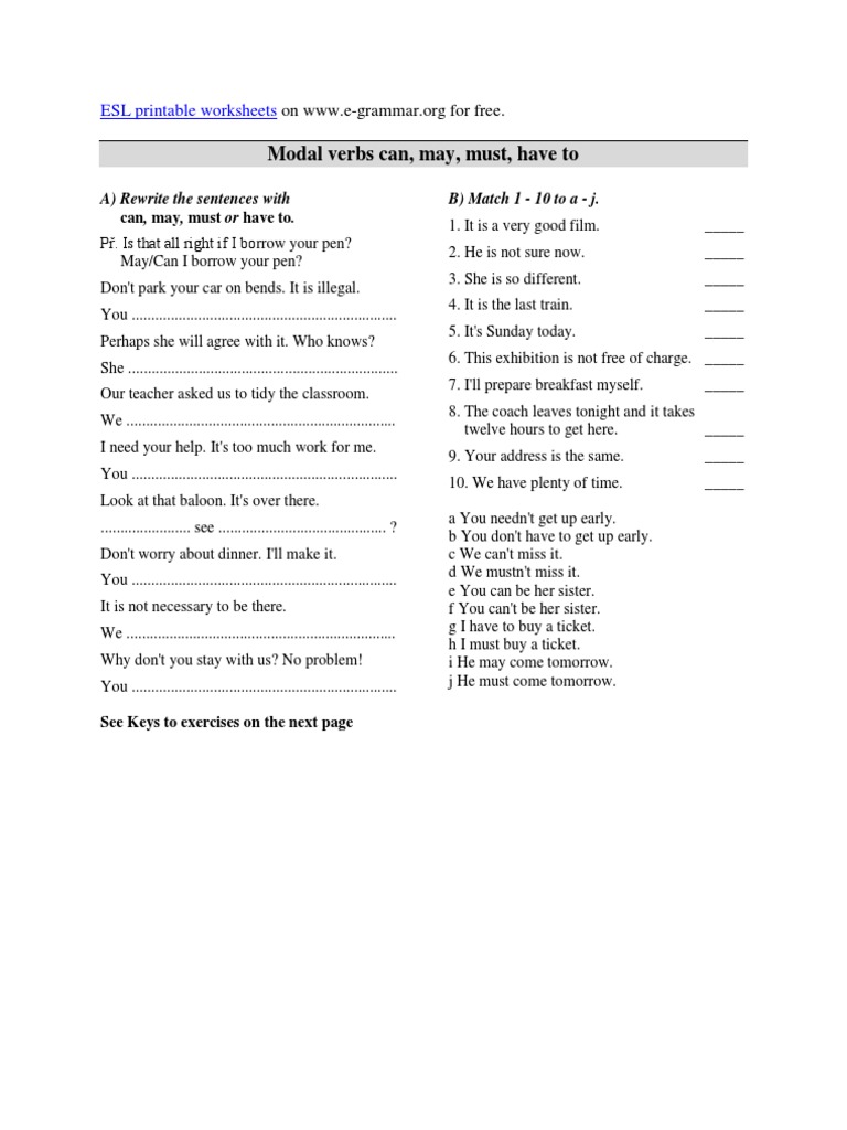 Choose the correct substitute for each modal verb. Here are two examples of worksheets from this section that you might want to use in class. Must is a modal auxiliary verb.